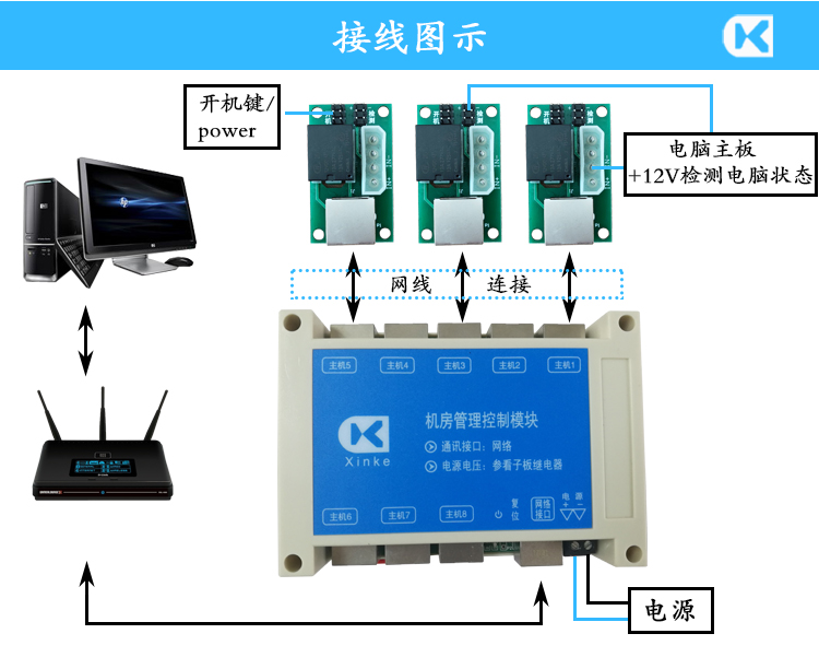 网络RJ45/串口RS485总线8/10路机房管理模块电脑开关机防止误操作