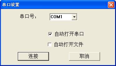 用户在这里选择正确的串口号,还可以设置是否自动打开串口、是否自动打开文件,单击连接