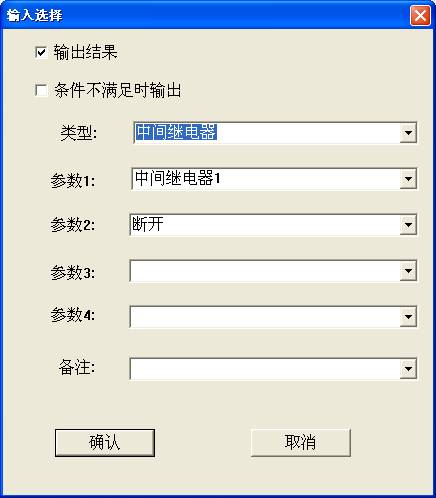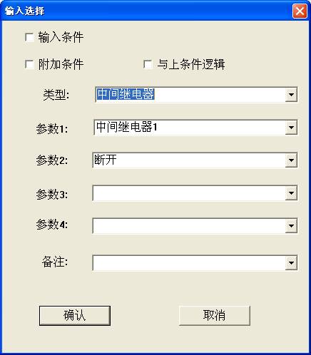 参数1代表第几个中间继电器,软件最多支持32个中间继电器,参数2代表中间继电器的输出状态(包括断开、闭合、断开到闭合、闭合到断开、状态翻转)