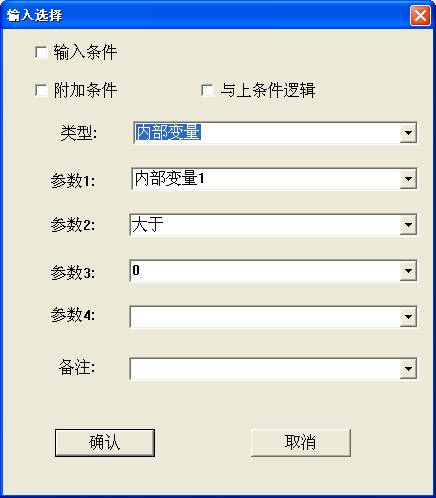 参数1代表第几个内部变量,软件最多支持32个内部变量,参数2代表对内部变量的运算规则,包括(大于、小于、等于、大于等于、小于等于、不等于、允许改变值、不允许改变值、因其它值变为目标值),参数3是对参数2的赋值