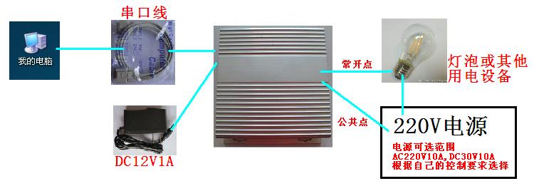 如果把继电器简单的当作开关使用时,可以按下图所示方法接线即可(下图以灯泡为示例)!