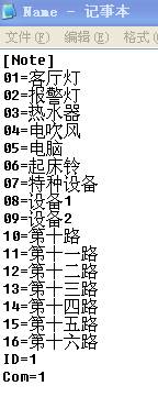 更改每一路的名称,比如第一路改为“电视机”,只需把01=后面的内容改为“电视机”即可 【 01=电视机 】,保存更改后的信息