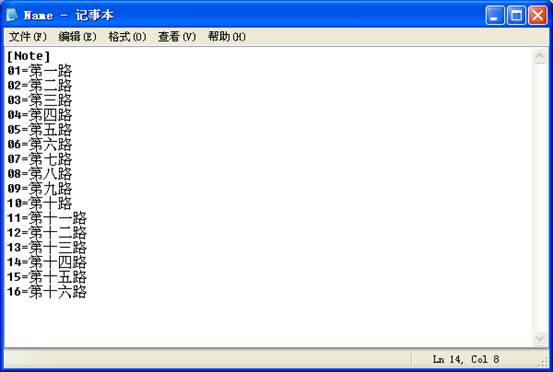 更改每一路的名称,比如第一路改为“电视机”,只需把01=后面的内容改为“电视机”即可 【 01=电视机 】,然后保存